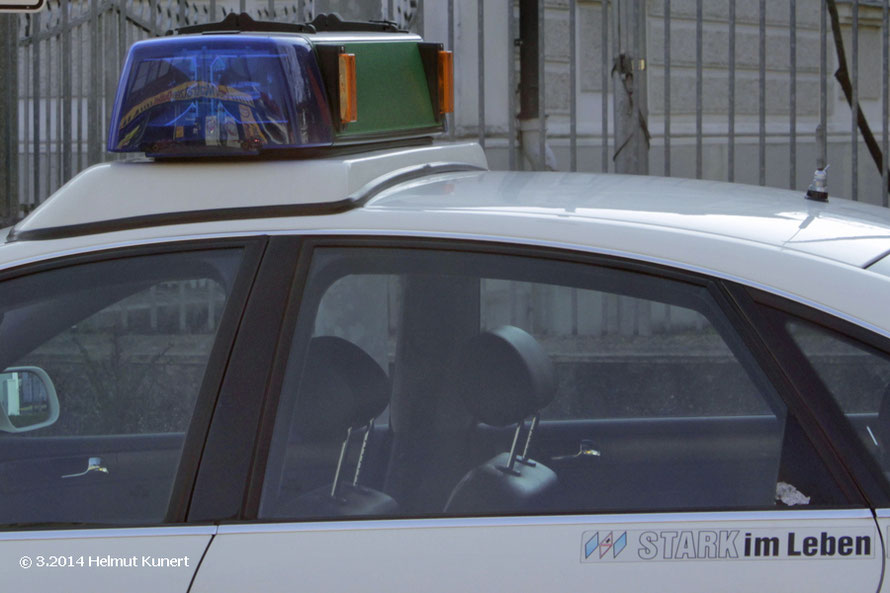 Audi A6 Limousine mit Hella RTK Sondersignalanlage mit Gelblicht nach Hinten.