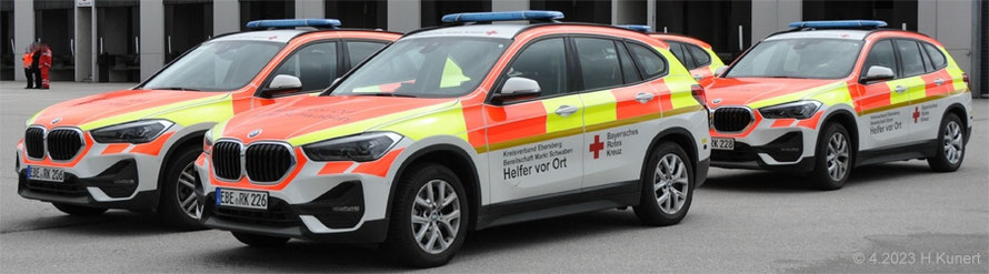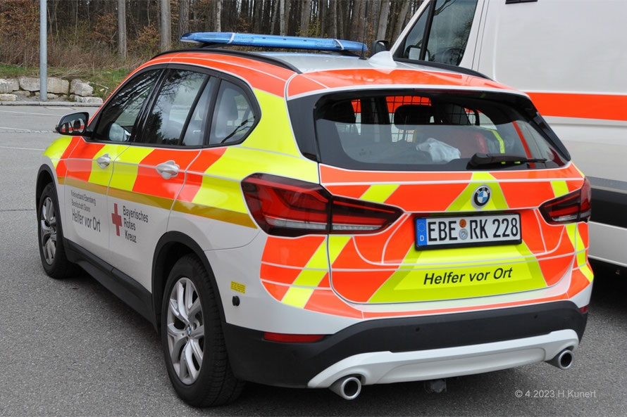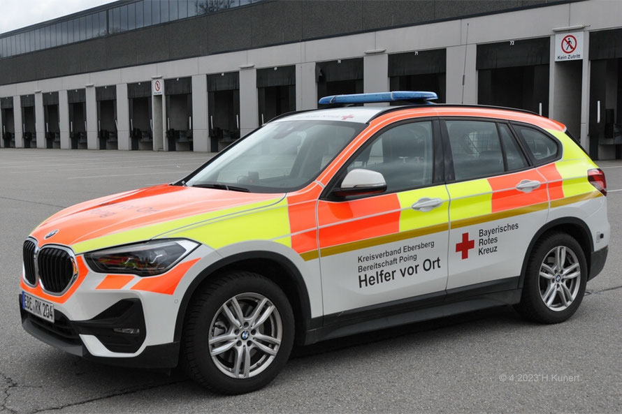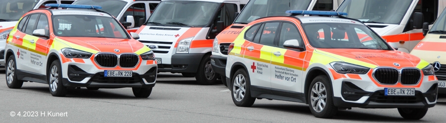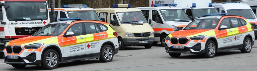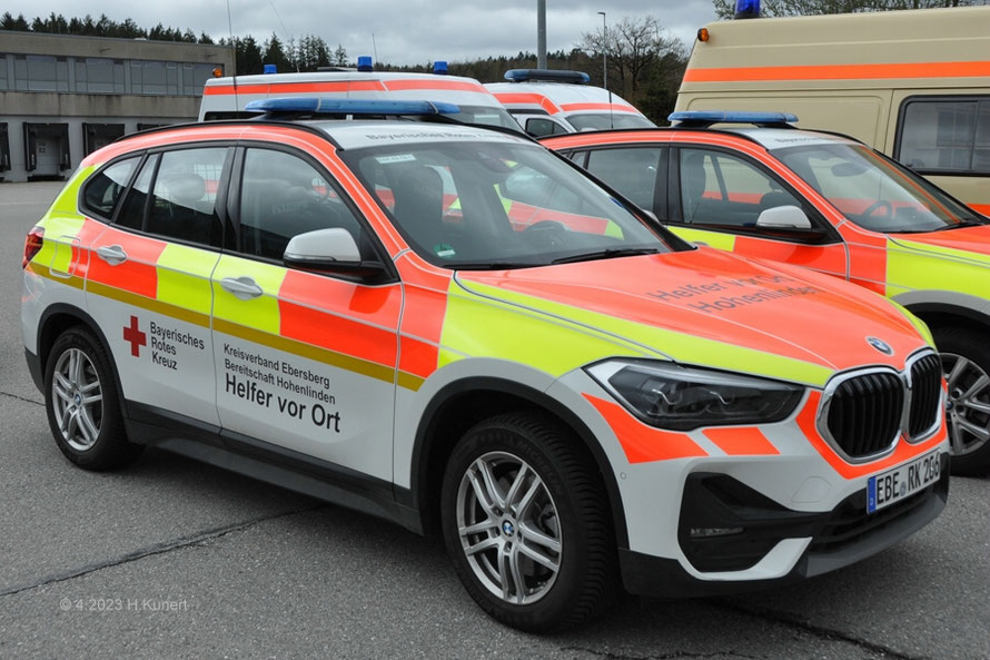 4 Helfer vor Ort Fahrzeuge des BRK KV Ebersberg