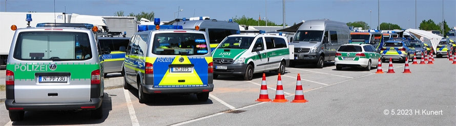 An der Kontrollstelle beteiligte Fahrzeuge der bayerischen Polizei