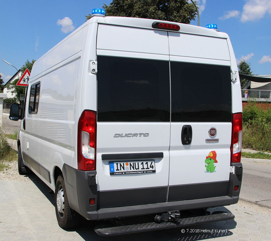 Bis auf die 4 Blaulichter und die beiden Straßenräumer, neutrales Fahrzeug der Brandermittler der Kripo Erding. Hinweis auf die Brandermittler liefert nur der kleine "Grisu" auf