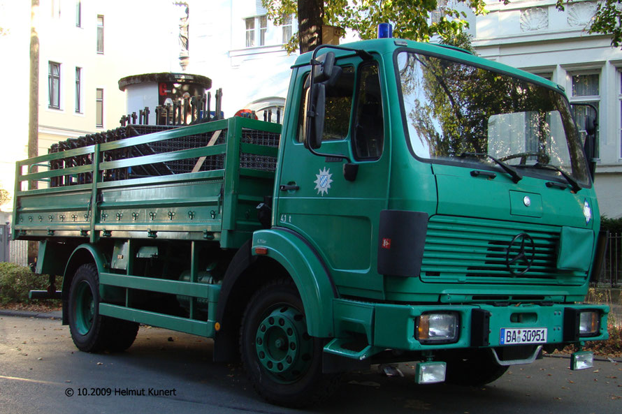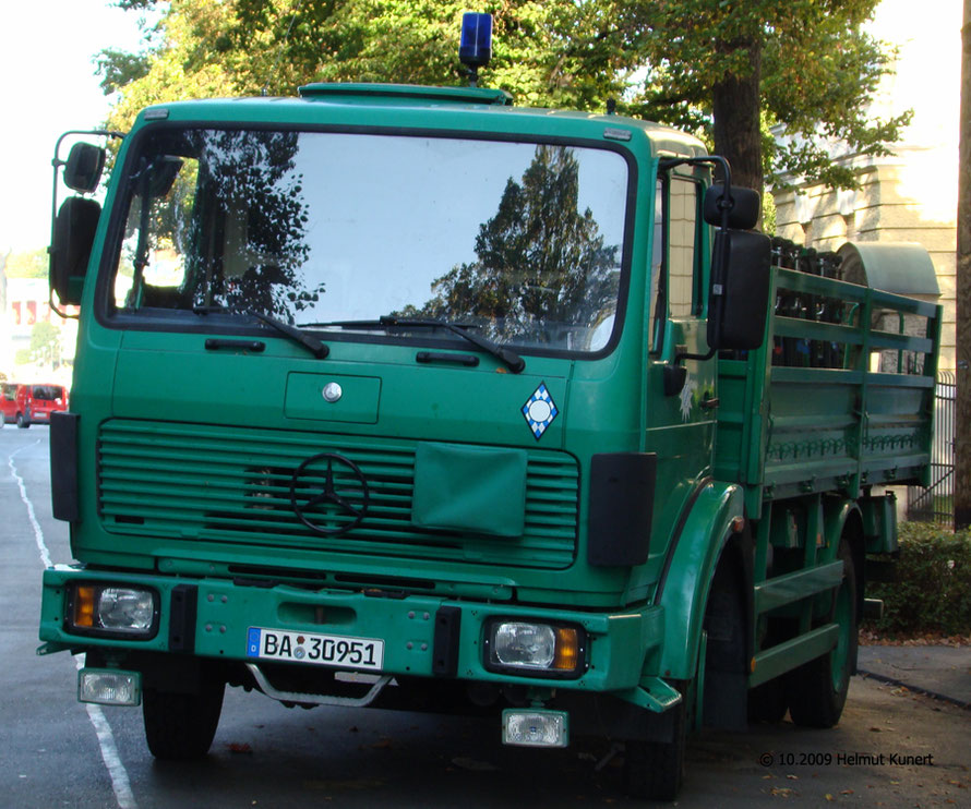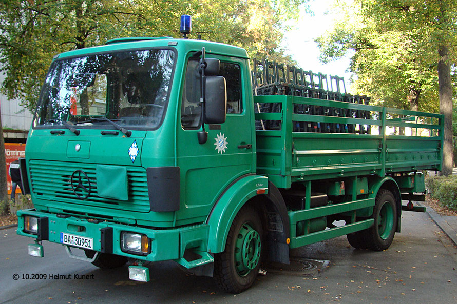 Der LKW wurde in Nürnberg ins Blau umlackiert und mit anderen Blaulichtern ausgestattet. Siehe Hier