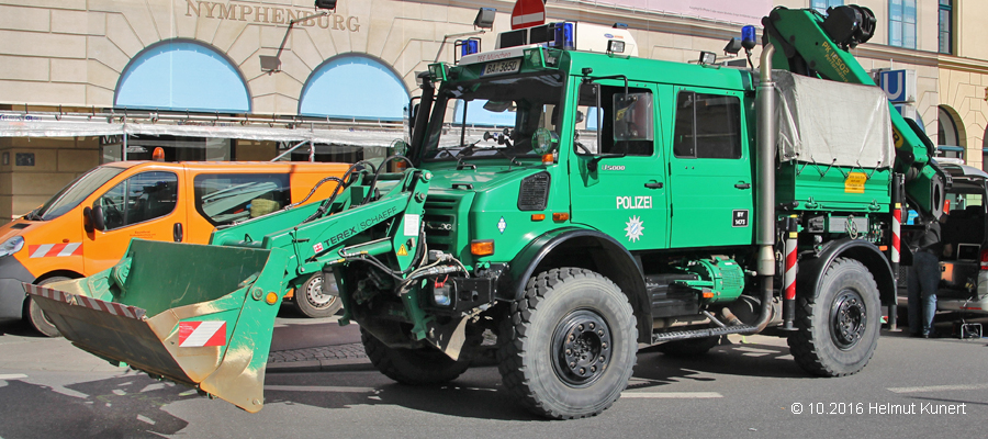 Unimog Eckhauber U5000 mit Kran und Frontlader der TEE bei der I. Abteilung Weitere Angaben siehe hier