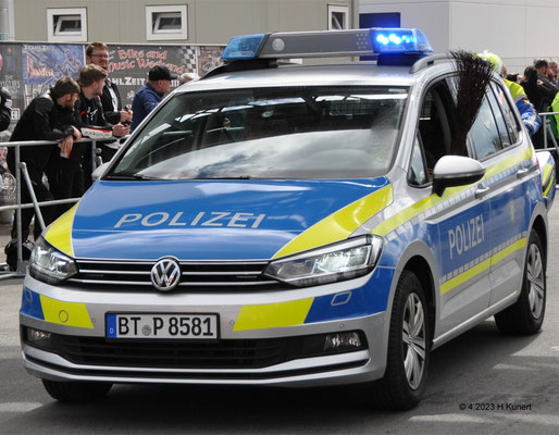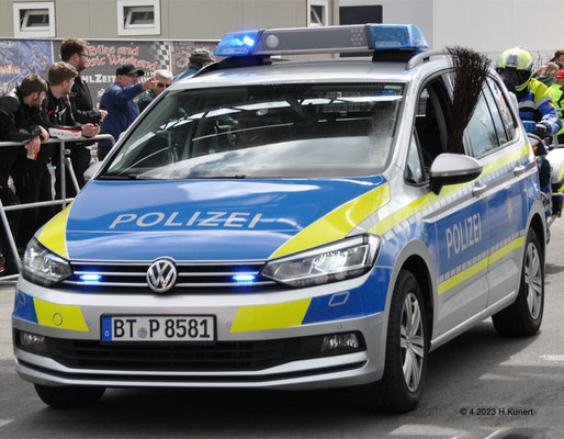 Als Schußfahrzeug beim Motorradkorso in Kulmbach mit Reisigbesen!