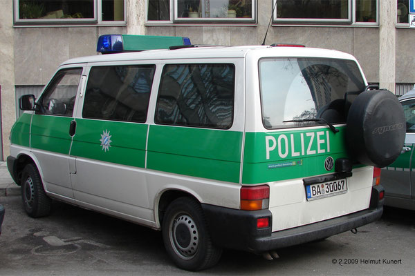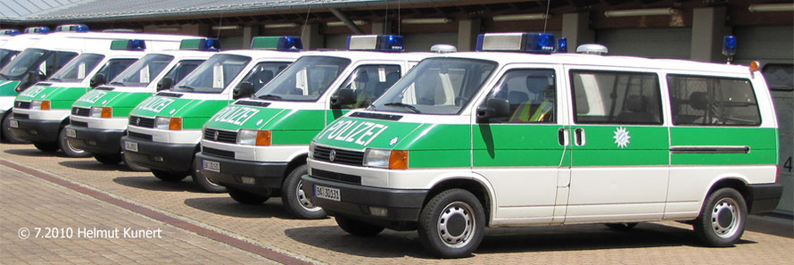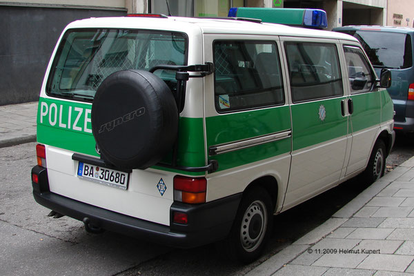 VW T4 Syncro TDI GP: das typische für diesen Typ ist das wegklappbare Reserverad hinten und damit verbunden der Schriftzug POLIZEI links, nicht mittig.