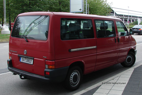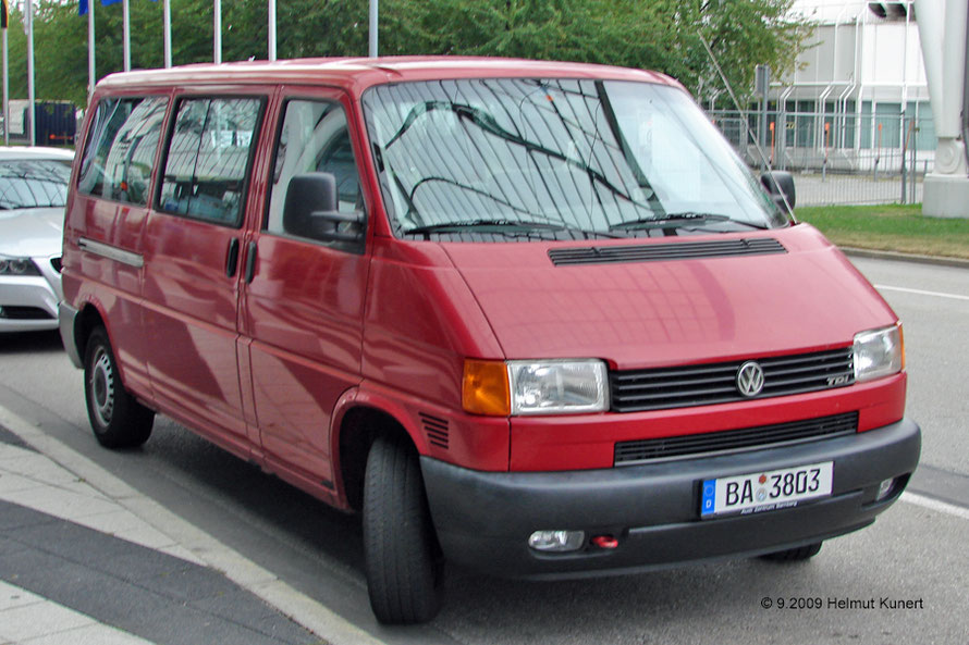 VW T4 Allrad in zivilem dunkelrot.