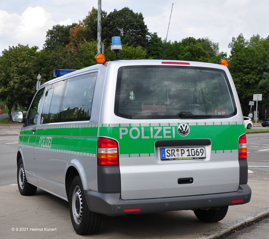 VW T5 in Silber mit grünen Streifen bei der LaPo