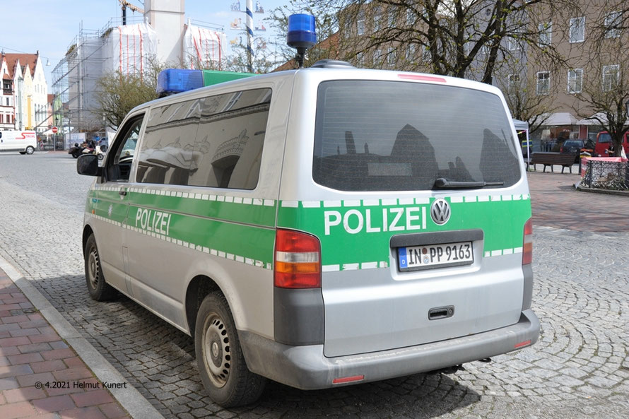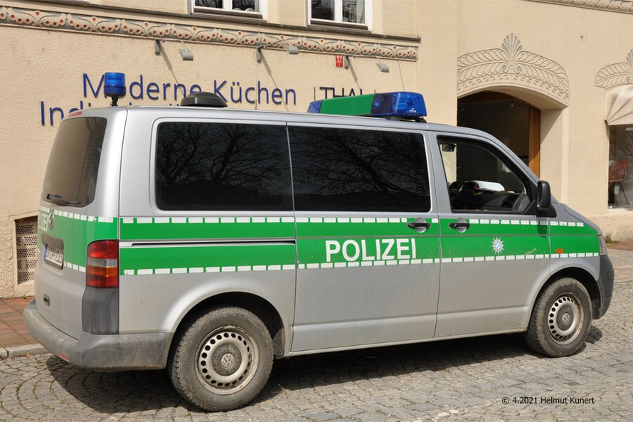 Streifenwagen der PI Dorfen. Anhaltesignalgeber vorn und hinten, Dachlüfter, verdunkelte Scheiben, Straßenräumer, Hella RTK6-SL Blaulichtbalken, Steckblaulicht hinten.