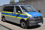 VW Bus/Transporter T6.1 in Silber/Blau/Gelb bei der Bepo